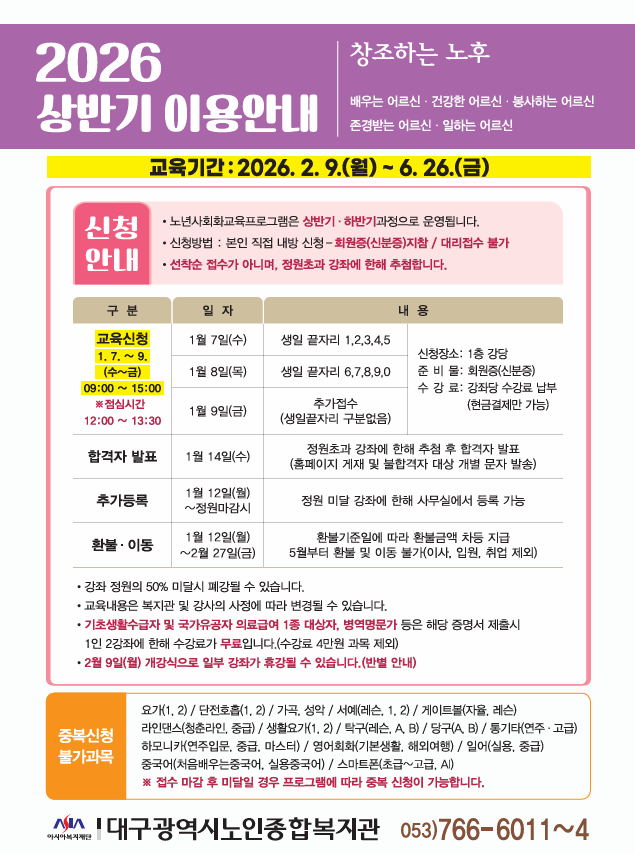 2026년 상반기 노인복지대학 신청 및 이용 안내
